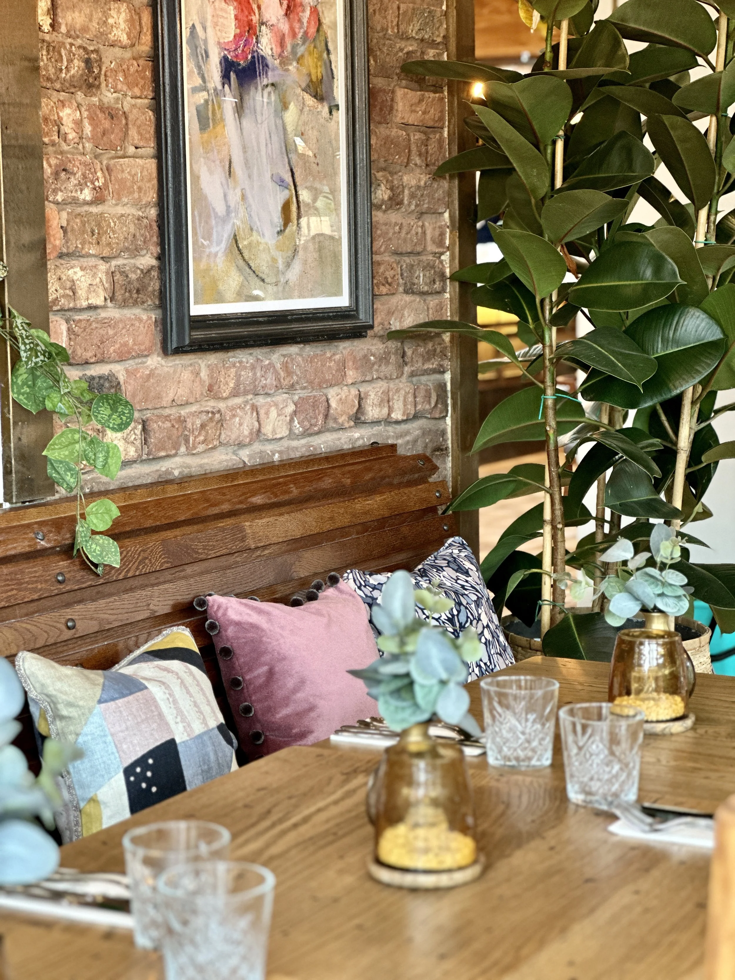 Theme: The transformation of run down 17th century Manor House into a cozy Gastro Pub, Restaurant and Wedding Venue. Breathing a new lease of life into the scheme preserving some of the history whilst introducing a modern twist with Bold Abstract Canvases, glazed ceramic pots and plants. Tradition and Contemporary works, side by side.